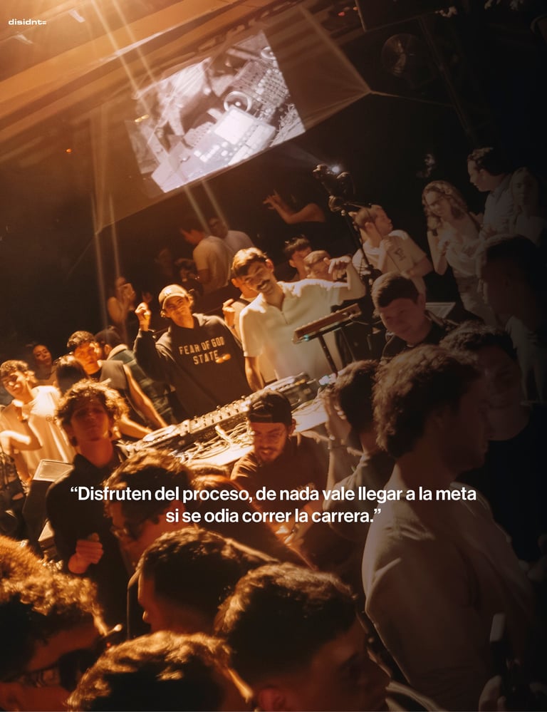 Qué la principal persona para la cual uno hace música es uno mismo, si no lo sientes o lo haces por querer ser aprobado nunca va a funcionar. El arte es un proceso de mucha paciencia, disciplina y resiliencia, es muy fácil frustrarse o sentir que “no sirvo”, pero al final la práctica hace al maestro, para hacer un track bueno primero tienes que hacer 50 que apestan.